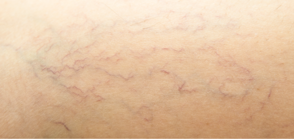 Spider veins are fine red or blue veins on the legs or other parts of the body. They typically fan out across the skin like small webs, and are also known as telangiectasias.